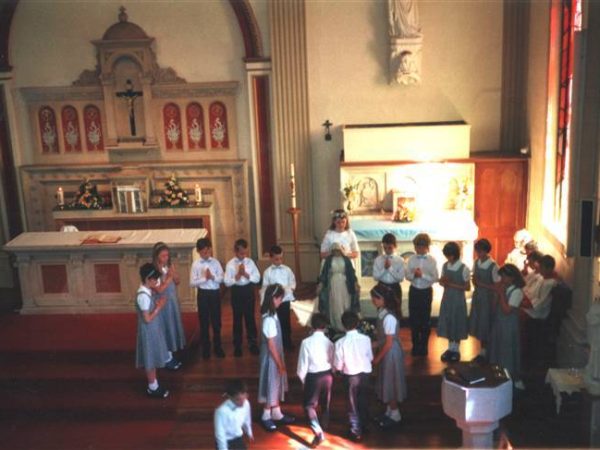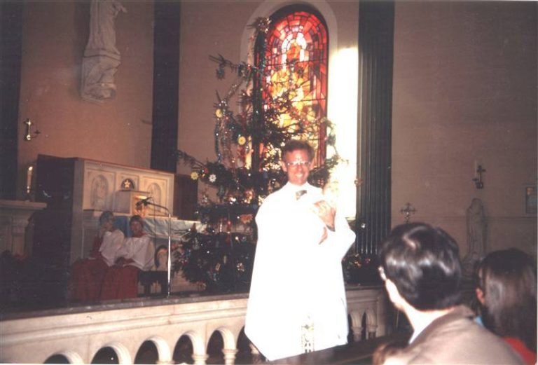 Fr Pat used to present a Christmas child as part of the celebration to remind us of the heart of the Christmas message. This picture is from 1986, note the long gone altar rails in the picture.