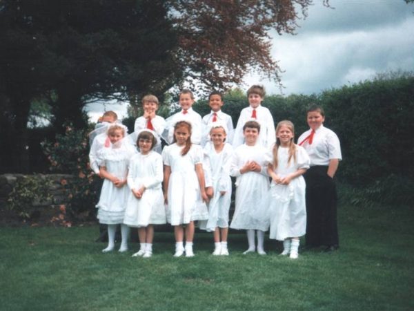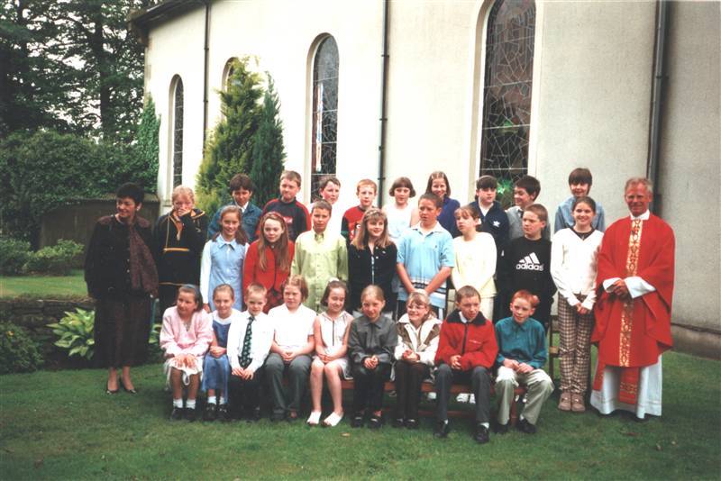 The confirmation group from 1999, this time featuring Mrs Barron and Fr Pat flanking the group, can you name the youngsters?