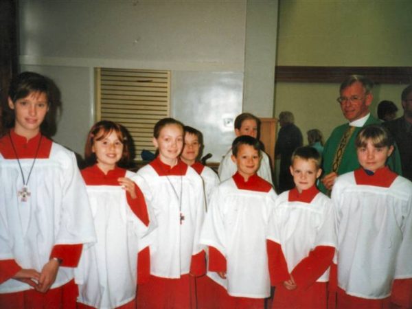 In 2000 as part of our millenium celebrations we held a mass in Goosnargh Village hall which was very well attended. Here we have a picture of the altar servers with Fr Pat, can you name them? Do you have any more pictures of the event we can use?